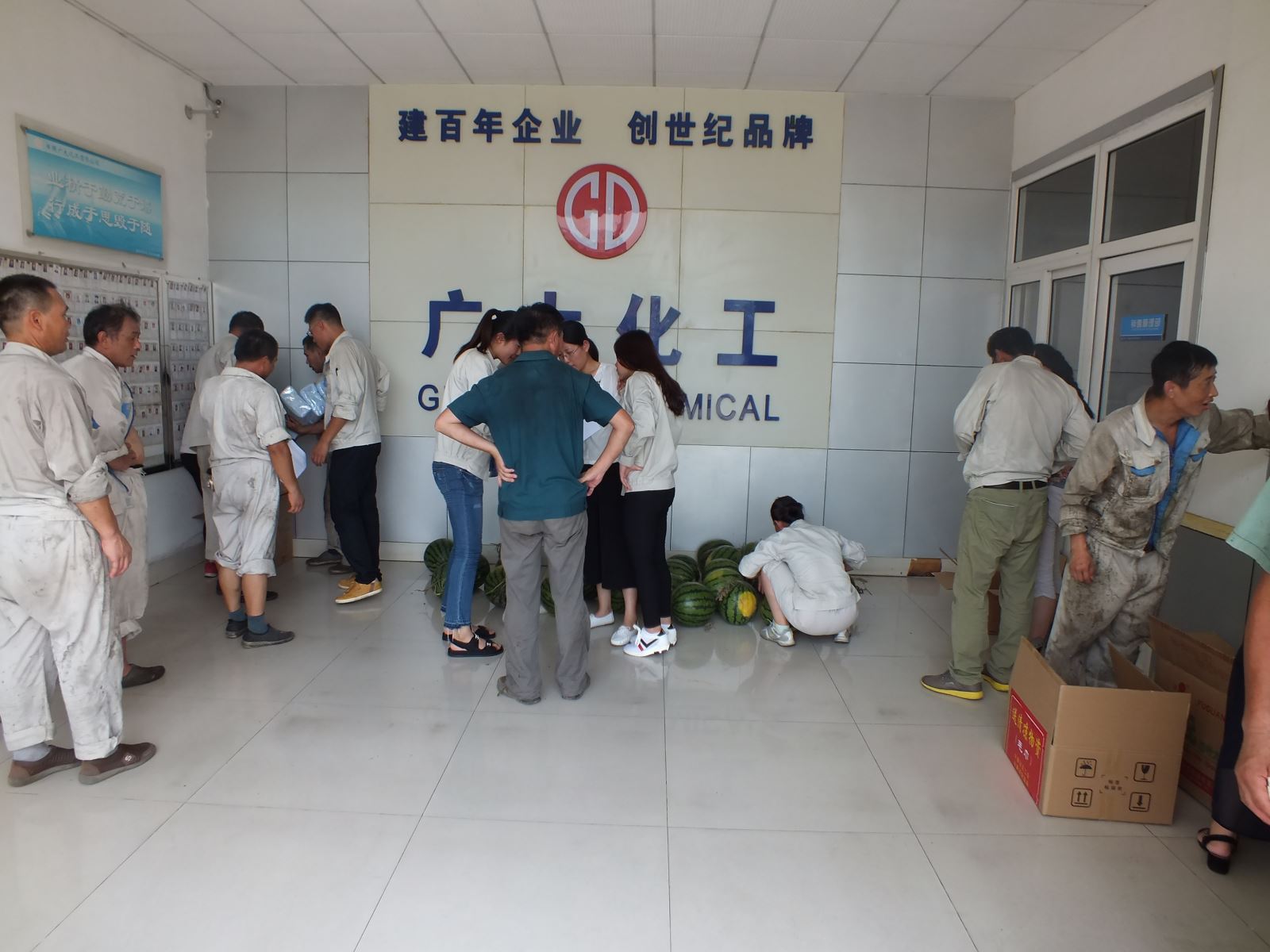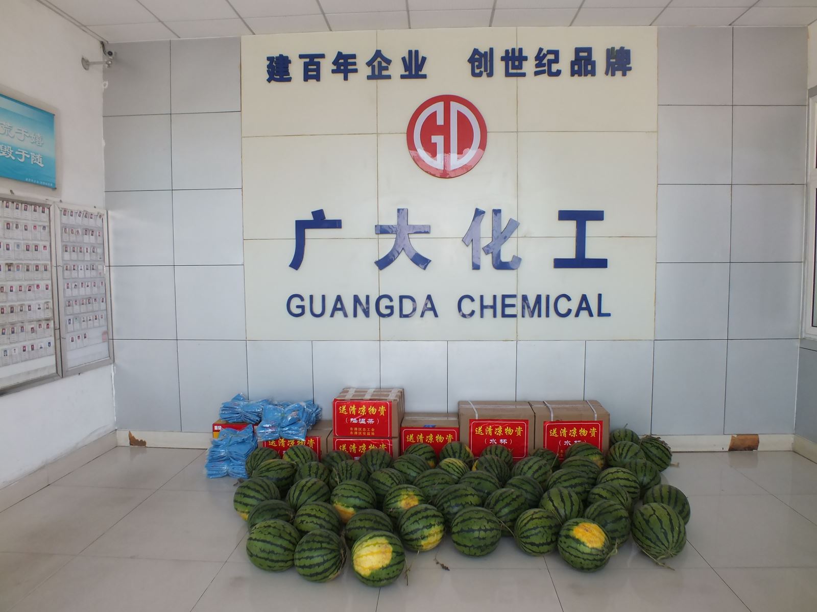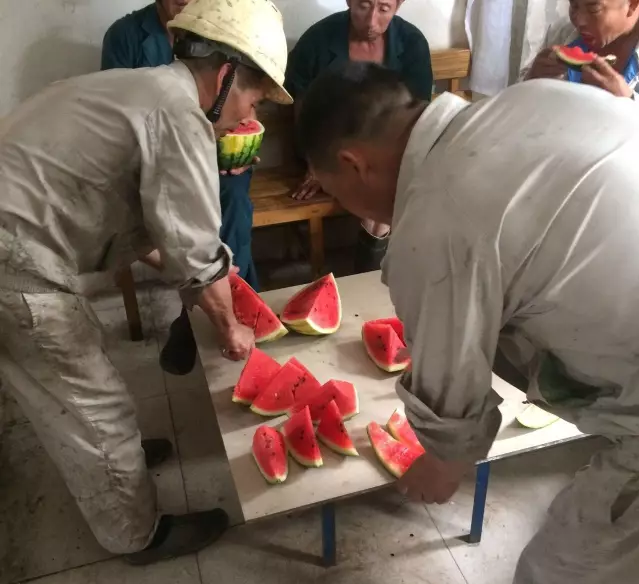 經(jīng)過一上午的準(zhǔn)備,所有的西瓜在整齊擺放,讓員工們第一時間吃上清涼可口的西瓜,緩解炎熱高溫帶來的疲憊。