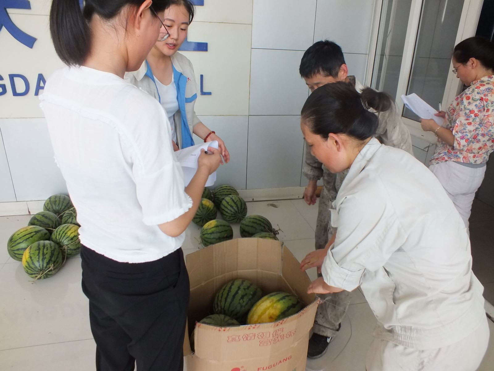 拿起手中的西瓜,每一位員工的臉上都綻放了幸福的笑容,一塊看似不起眼的西瓜,卻因為這里面蘊(yùn)含著愛的溫度,讓他們忘記了炎熱與勞累,而那一張張笑臉也是對我們此次慰問活動最大的肯定!